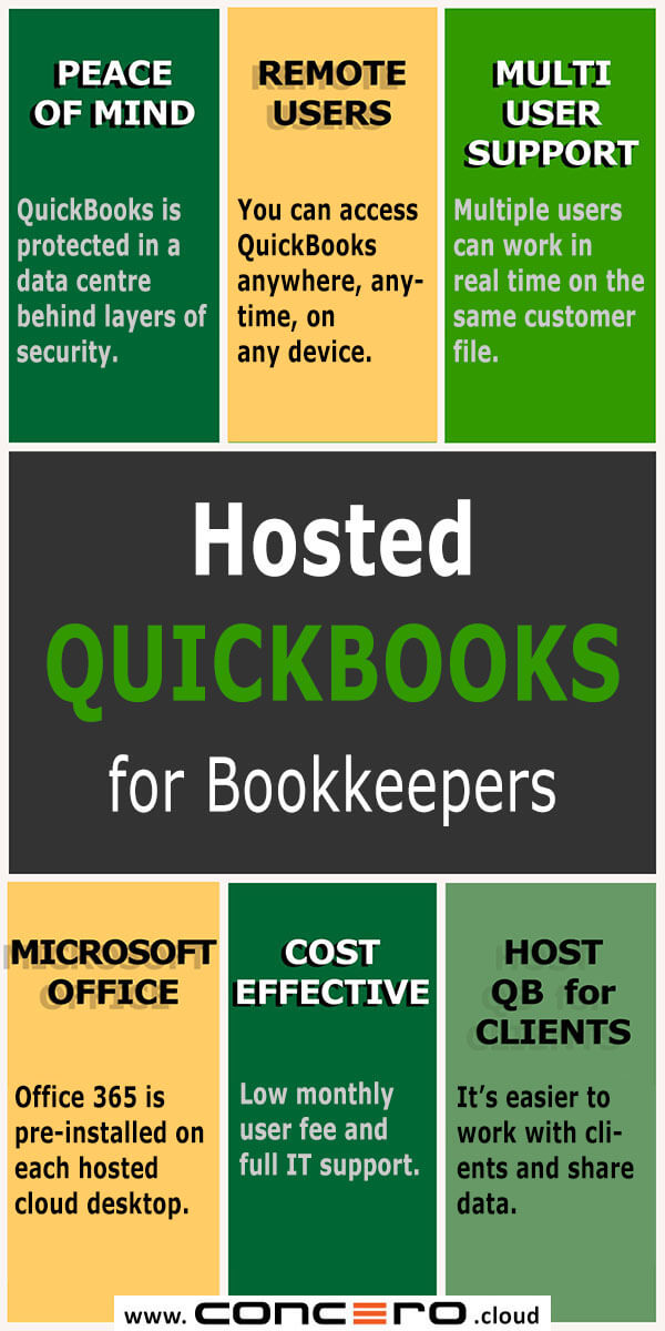 Hosted QuickBooks from Concero is an ideal solution for bookkeepers using the Accountant version of QuickBooks and/or for their clients using their own versions of QuickBooks Pro, Premier, or Enterprise.